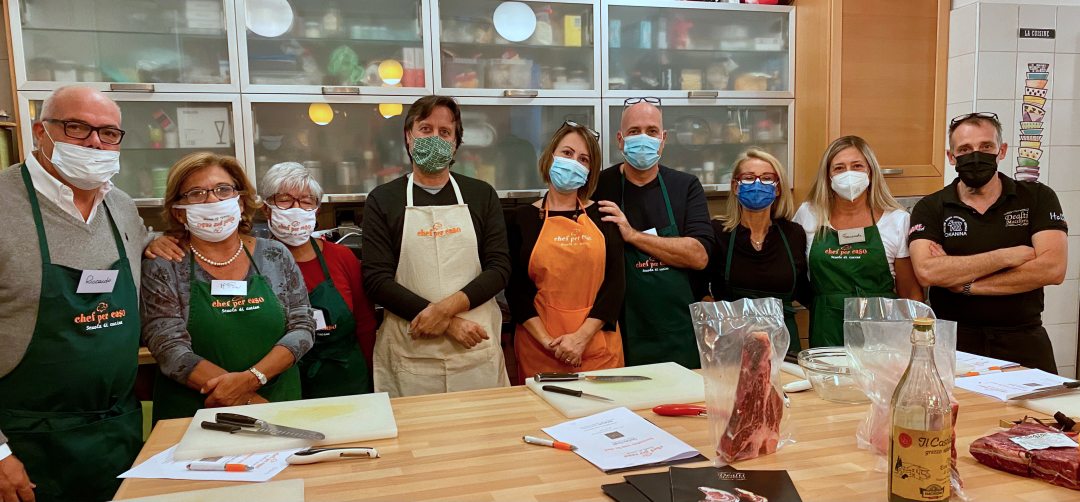 Nella replica di questa fantastica lezione Riccardo, Maria Pia, Nerina, Massimo, Sandra, Mario, Paola e Fernanda hanno seguito attentamente i consigli e i trucchi di Stefano per ottenere la bistecca perfetta. Tre i diversi metodi di cottura (diretta/indiretta, reverse searing e sous vide) utilizzando i seguenti tipi di carne Mazury (Polonia), Italian cow, Angus irlandese.