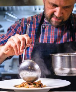 Lo chef Emiliano Gusella ha un bagaglio di esperienza pluriennale, maturato in diversi ristoranti della nostra città, dalle Cantine Squarciafico a Mentelocale, dalla Franca in Vico lepre alla Casa dei capitani di Quinto, ad Anciöe Belle donne, fino ad arrivare a guidare la cucina di l’Öosteria nel centro storico genovese.