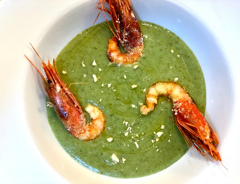 - Pescatrice in panure alle erbe di Liguria su zuppetta di zucchine