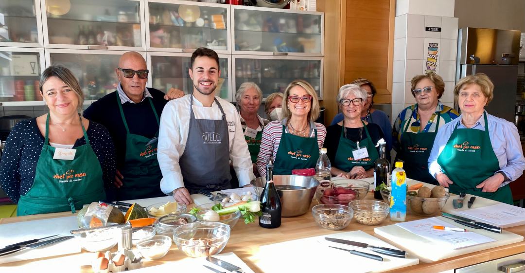 Cosa dire del giovanissimo Matteo, classe 1995, genovese DOCG, faccia pulita, grande studioso della tradizione ligure alla quale vorrebbe apportare garbatamente innovazione. Questo ragazzo ha tantissima voglia di fare, e insieme allo chef Simone Vesuviano, lavora per interi pomeriggi a nuove sperimentazioni, senza sosta, con una passione innata… un mix perfetto per una lezione che ha proposto ricette che hanno saputo stupire gli occhi e le papille gustative di Graziella, Domenico, Cristina, Dada, Paola, Nerina, Maria Pia e Maddalena.