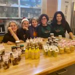 Prima assoluta per la sempre attesissima lezione sulle Sorprese golose; anche quest’anno Viviana ❤️ come sempre ha superato se stessa…non solo selezionando ricette sfiziose e invitanti ma anche supervelocissime,! Jessica, Thea, Roberta, Silvia, Nerina e Anna hanno preso parte alla “prima” lezione” sulle sorprese golose, per prendere spunti e idee per regali golosi da donare ad amici e parenti. Nelle tre ore di lezione hanno preparato due tipi di liquori, Agrumello, liquore agli agrumi (limoni, arance e mandarini) e Natale ai Caraibi, alias Coquito, bevanda natalizia portoricana, a base di latte e crema di cocco, Rum e latte condensato, una Composta di mele nere, aromatizzata con polvere finissima di liquirizia, Nduja ven, esplosivo composto a base di pomodorini secchi, origano e peperoncino, una Tisana Japan, digestiva ma utile anche per le malattie da raffreddamento a base di zenzero, limone e zucchero di canna disposti a strati, Limoni confit, messi sotto sale, tipici della cucina marocchina, tre tipi di biscotti dolci: Riso&Rosa, friabili frollini aromatizzati con essenza, acqua e petali di rose, Orsetti caramellati, frolla arricchita da un caramello, Frollini alla liquirizia, e qui le partecipanti si sono sbizzarrite a ricavare frollini utilizzando stampini a pressione a tema natalizio; infine un biscotto salato…i Pestarelli, deliziosi canestrellini aromatizzati al pesto genovese. Non poteva mancare la frutta secca con Frutta secca al fleur…de miel, nocciole e anacardi caramellati e aromatizzati con fiocchi di sale Maldon e curry, e neppure il cioccolato con le Choco bark fantasy, proposte in tre varianti, cioccolato bianco spezzettato aromatizzato con cranberries disidratati e pistacchi salati, cioccolato fondente aromatizzato con burro di noccioline e noccioline americane salate, cioccolato fondente decorato con cioccolato bianco e aromatizzato con biscottini secchi e piccolissime palline colorate. Tutto questo confezionato in una bel sacchetto riempito con tutte le preparazioni e le bellissime etichette che anche quest’anno Viviana ha preparato per noi; come sempre la ringrazio moltissimo per tutto l’aiuto che mi ha dato…. senza di lei non sarebbe stata la stessa cosa!!!