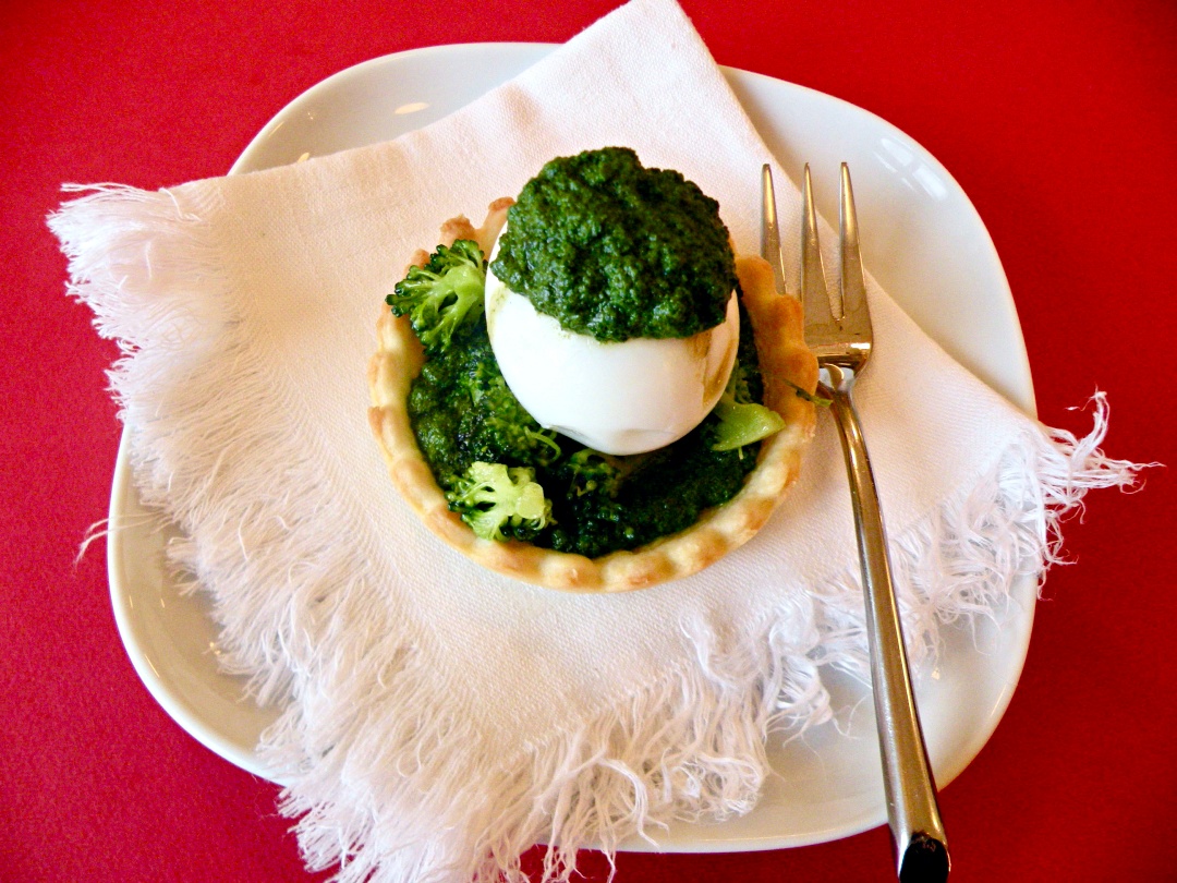 Tortine di broccoletti e uova barzotte con zabaione di spinaci